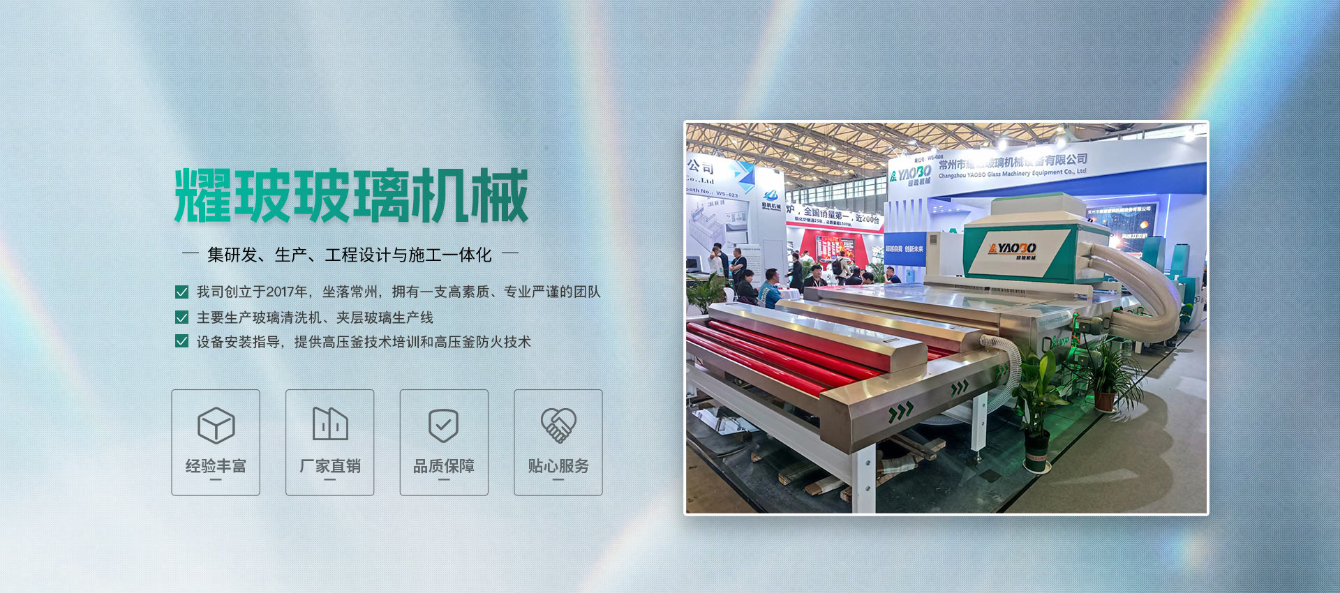 Changzhou Yaobo Glass Machinery Equipment Co., Ltd. is a specialized enterprise that produces glass washing machines and laminated glass production lines. We have a highly qualified and professional team consisting of personnel with rich experience and profound technical skills in the glass deep processing field. They strictly control every detail in their work, continuously optimize and improve product quality, and ensure that each piece of equipment can achieve optimal performance.